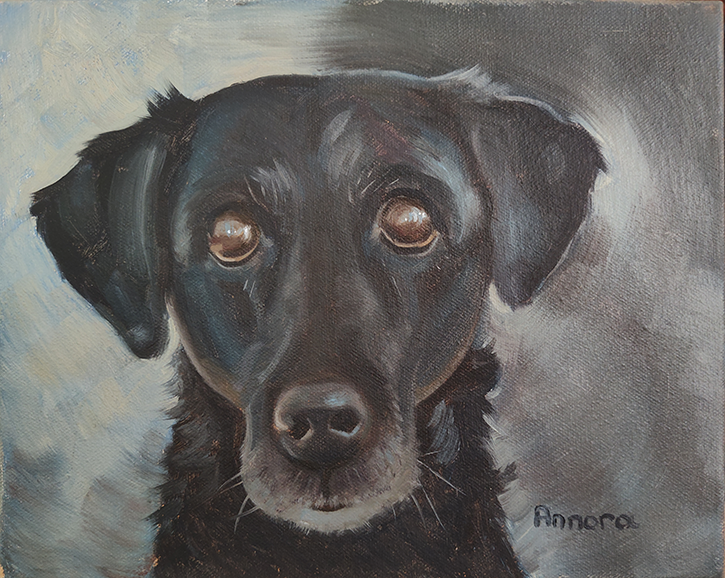 This was Sadie—a beloved black lab and one of my client’s dearest companions. After she passed, he commissioned me to create a collection of paintings in her memory.