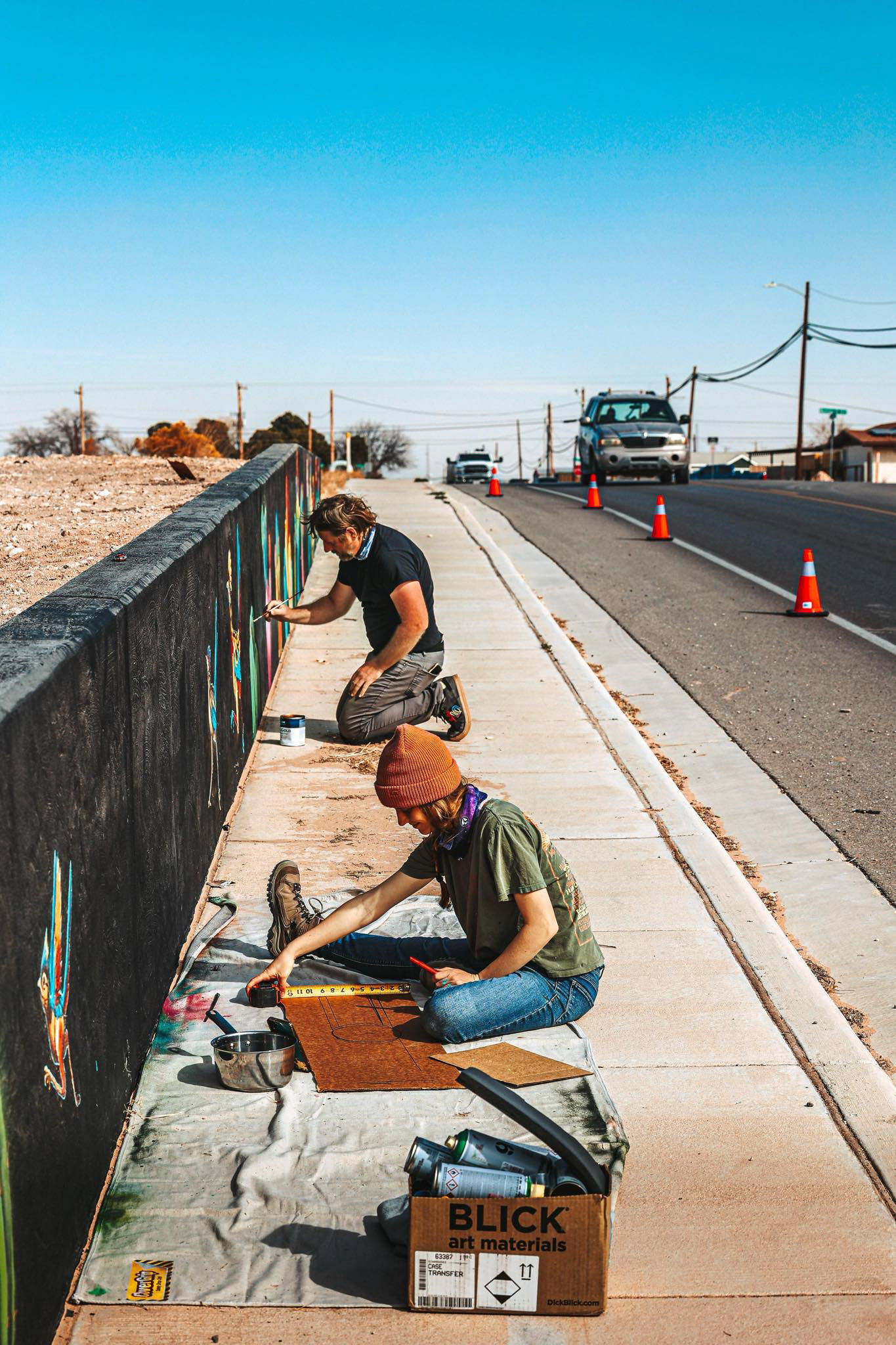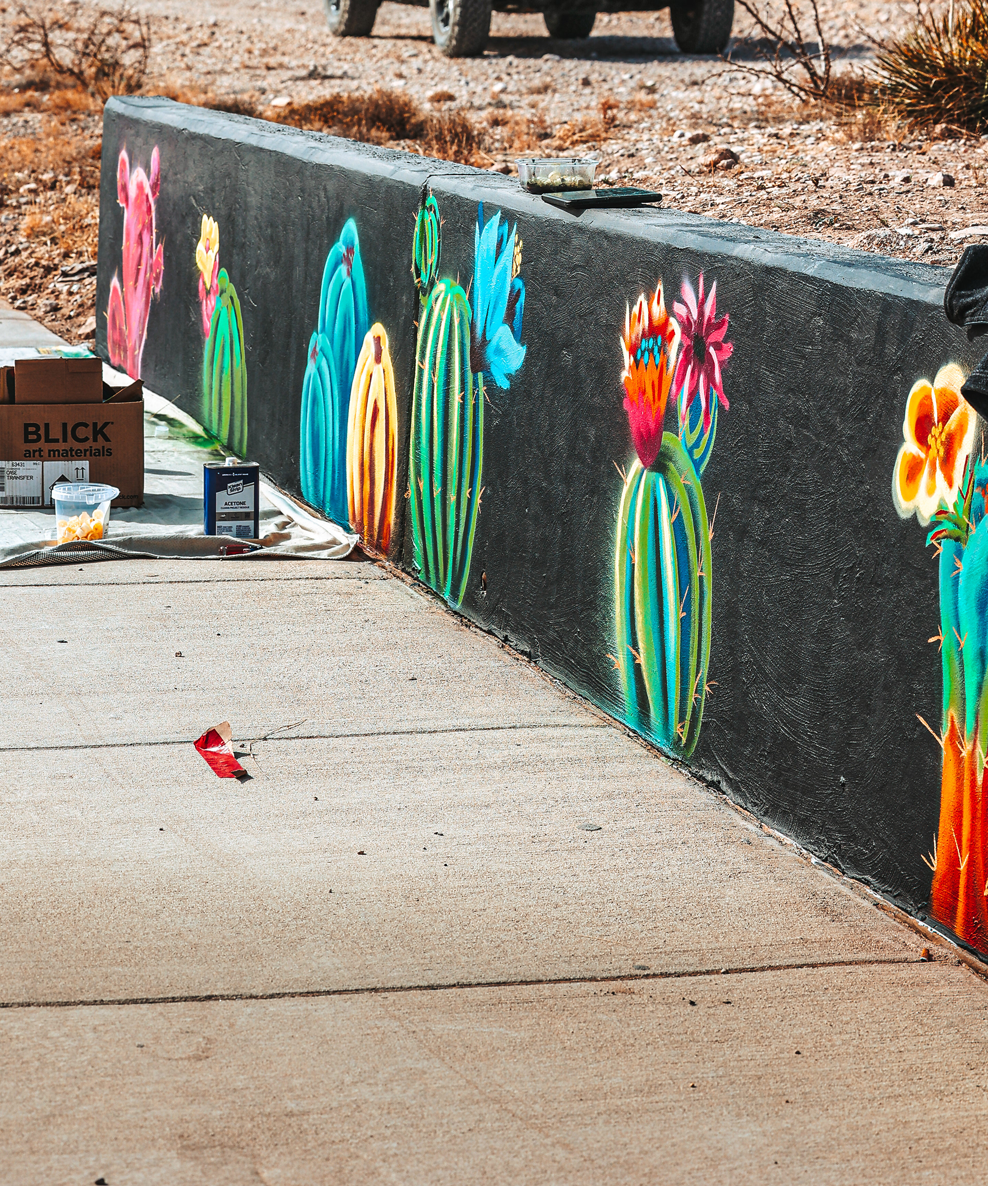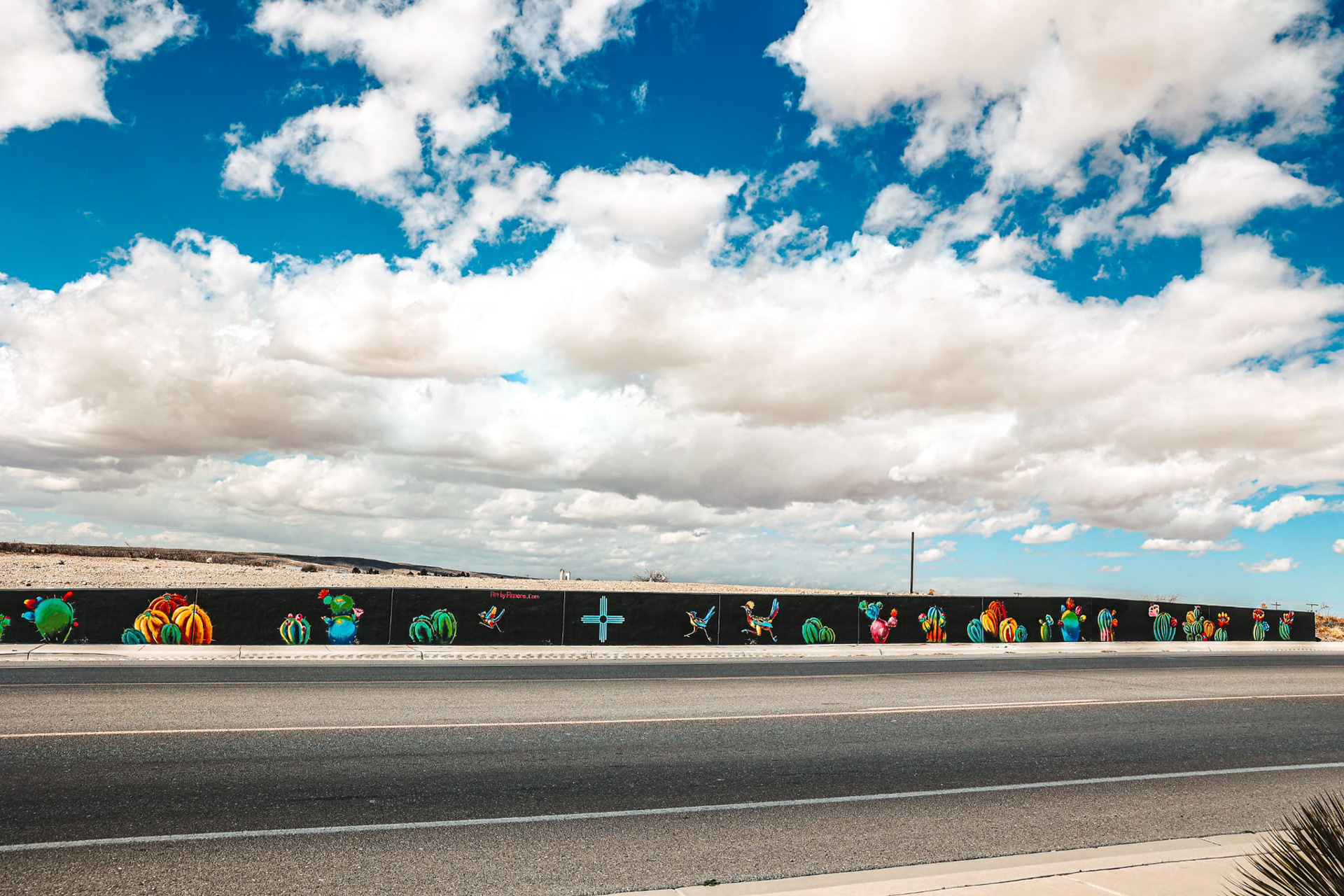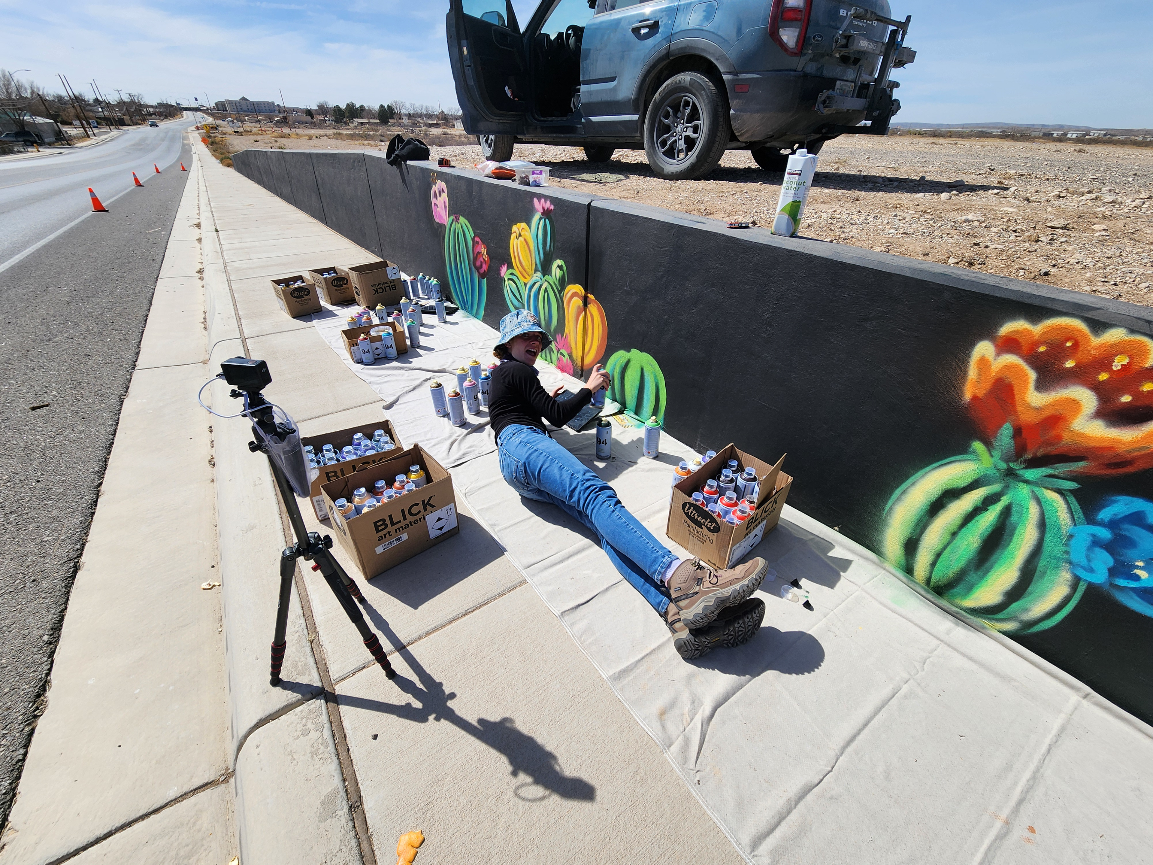 I was commissioned by City Beautification Coordinator Mary Garwood to design and install a mural for the Carlsbad community. The mural stretched along a 127ft wall located on one of Carlsbad's main roadways. The mural celebrated New Mexico’s vibrant plant and animal life. The piece was painted in bold poppy colors, and brought color, energy and joy to the heart of Carlsbad!