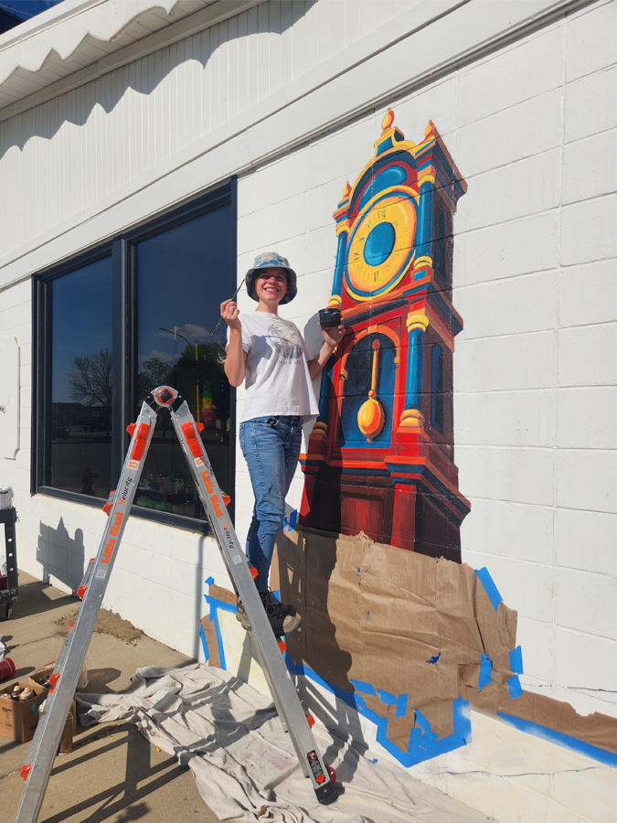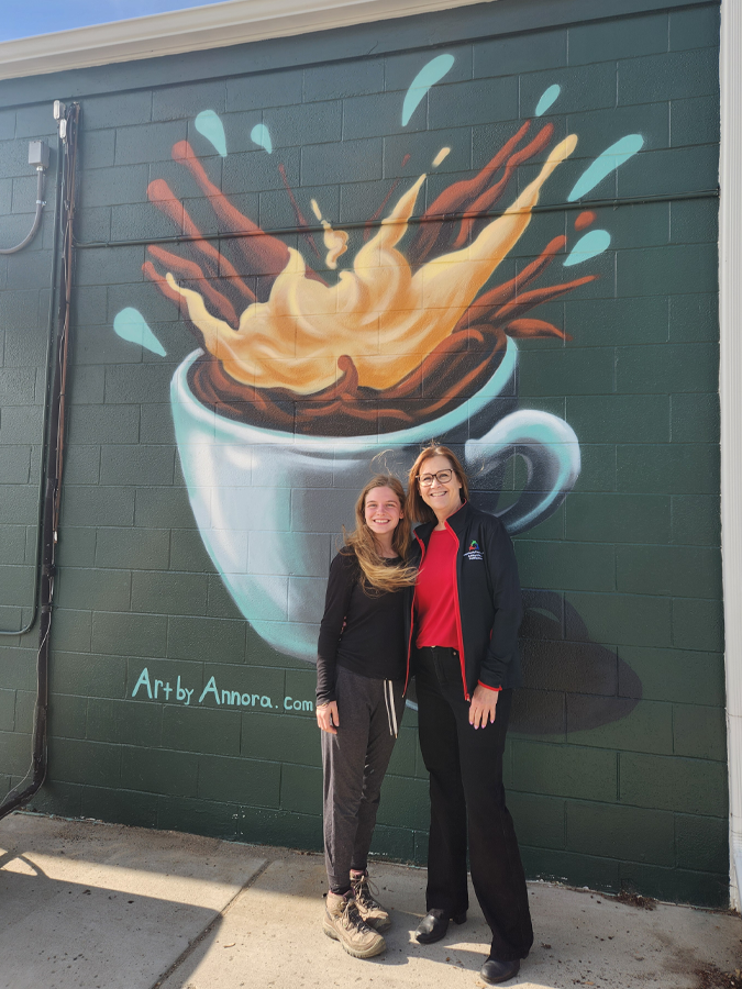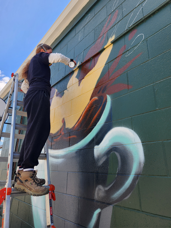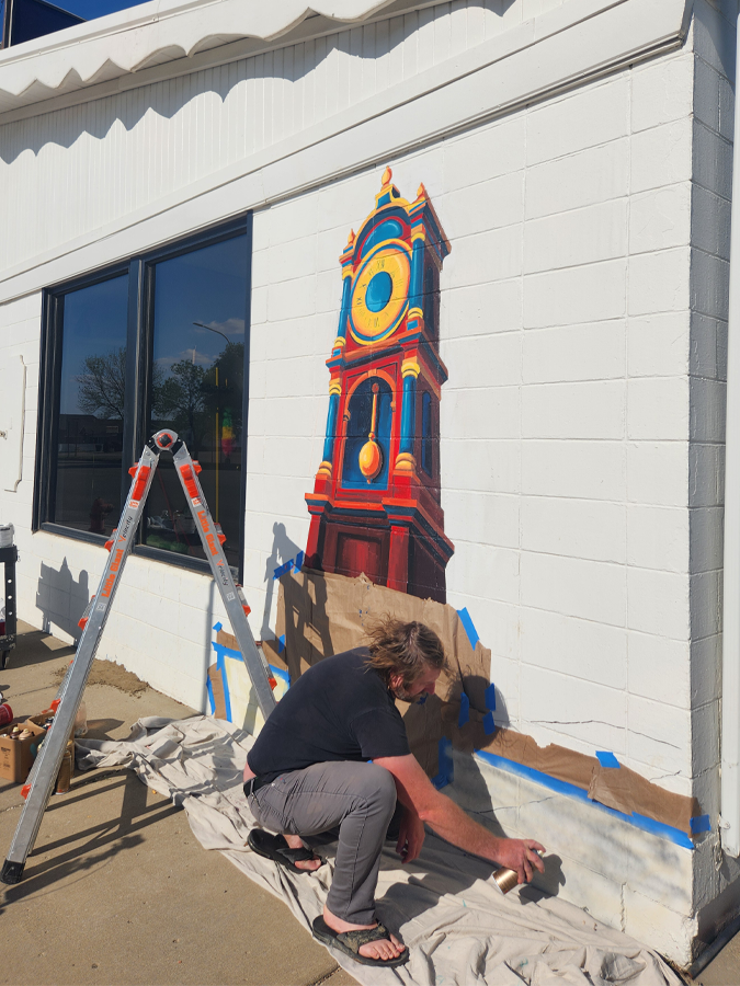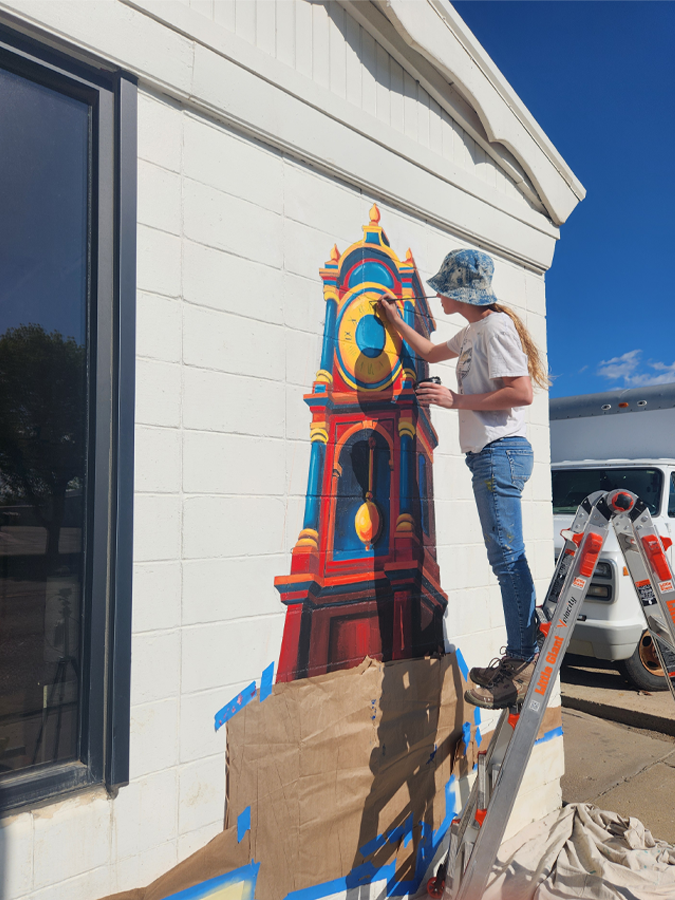 Commissioned by Mrs. Sonya Owens, founder of the Second Opportunity nonprofit located in Williston, I designed and installed murals for two of her business fronts. On the Second Opportunity ReStore, I created a striking grandfather clock mural— representing renewal, and second chances. At The Daily Addiction Coffee House, I painted a bold coffee cup mural that brought warmth to the business front and screamed COFFEE!